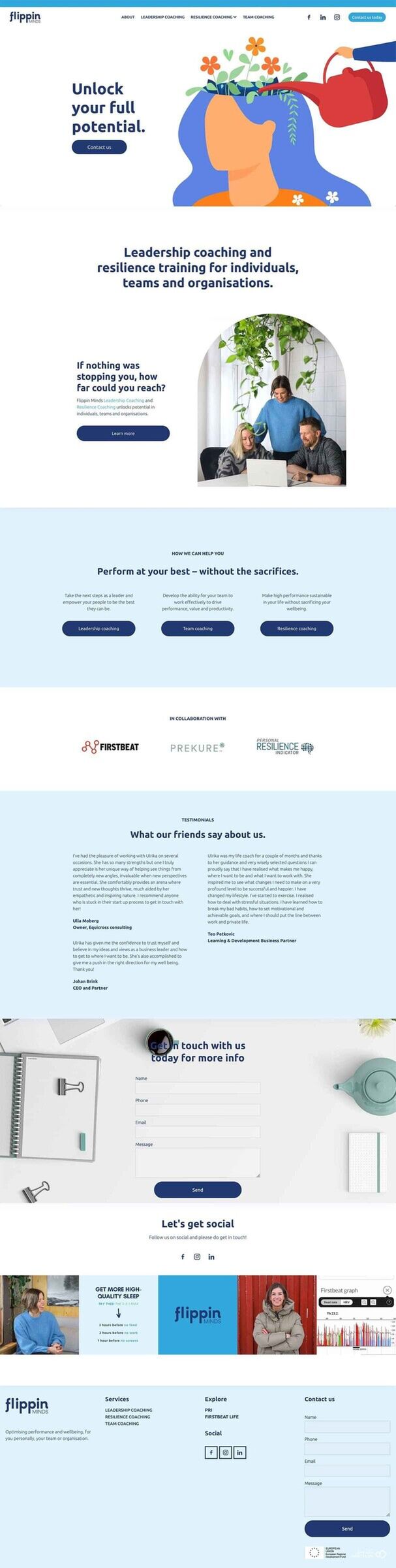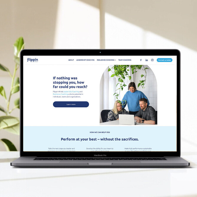 Flippin Minds arrived as a referral from Scandi Health Coaching — another wellness-focused client — but this time the project took me all the way to Sweden. Ulrika, the founder of Flippin Minds, specialises in leadership coaching and resilience training for individuals, teams, and organisations. Her work is centred on helping people perform at their best, and the insight behind her approach made this a genuinely interesting project to dive into.