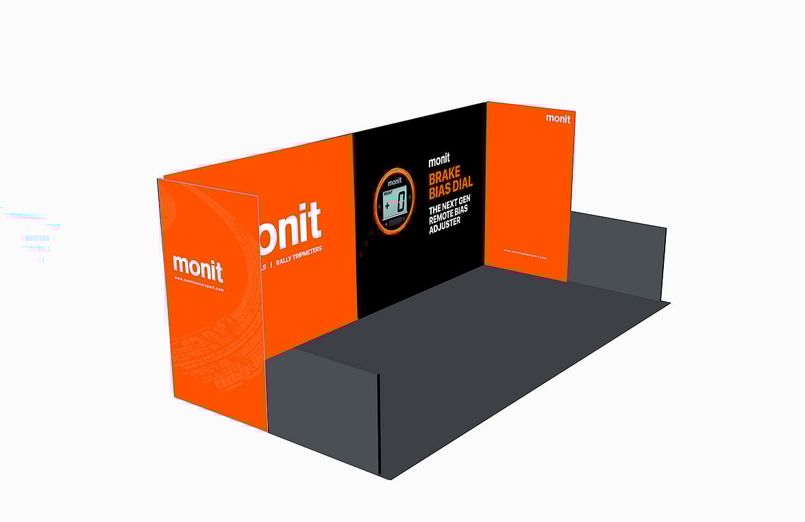 I worked together with Monit Motorsport to create their show stand for both a German and US Expo. The back panels were created to work together for the slightly smaller stand in Germany as well as the US stand. In combination of Stand background, I also helped them out with flyers and info brochures.